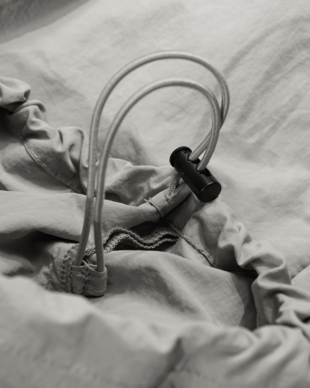 以降落傘褲為核心輪廓,重新詮釋機能與造型之間的關係,寬鬆的廓形賦予身體自由空間,而側邊開口設計,則在穿著之間建立了呼吸的節奏,不僅能因應穿著需求也讓輪廓隨步伐而改變,流露出獨特的動態美感。
