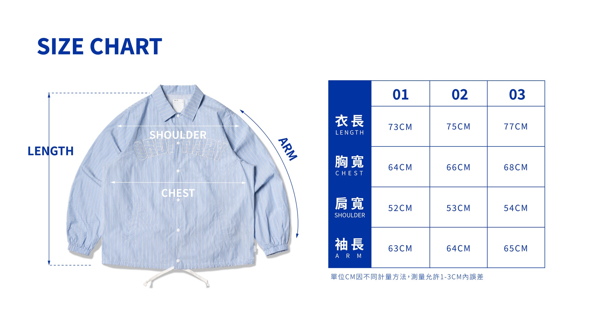 01:衣長73cm / 胸寬64cm /肩寬52cm/袖長63cm