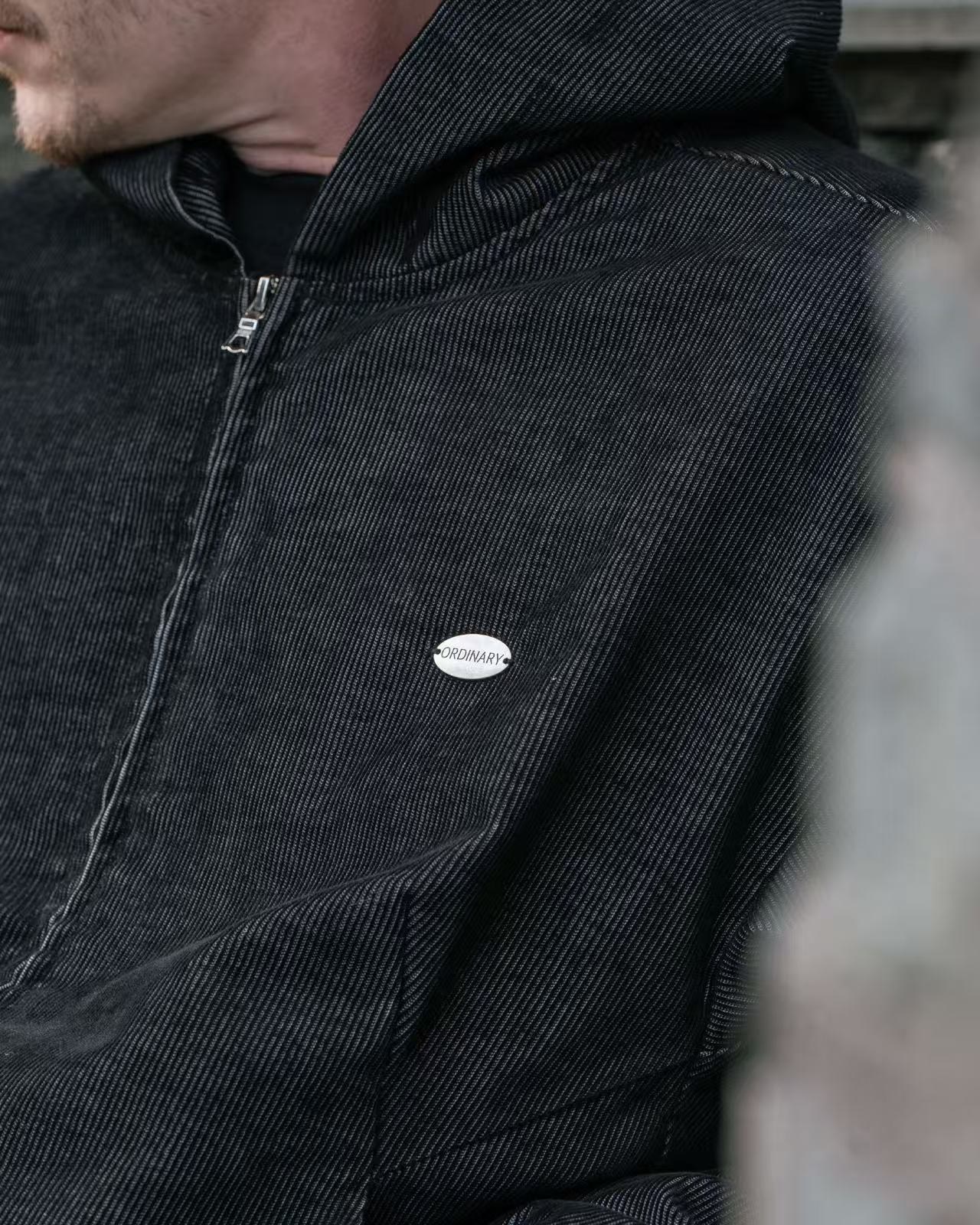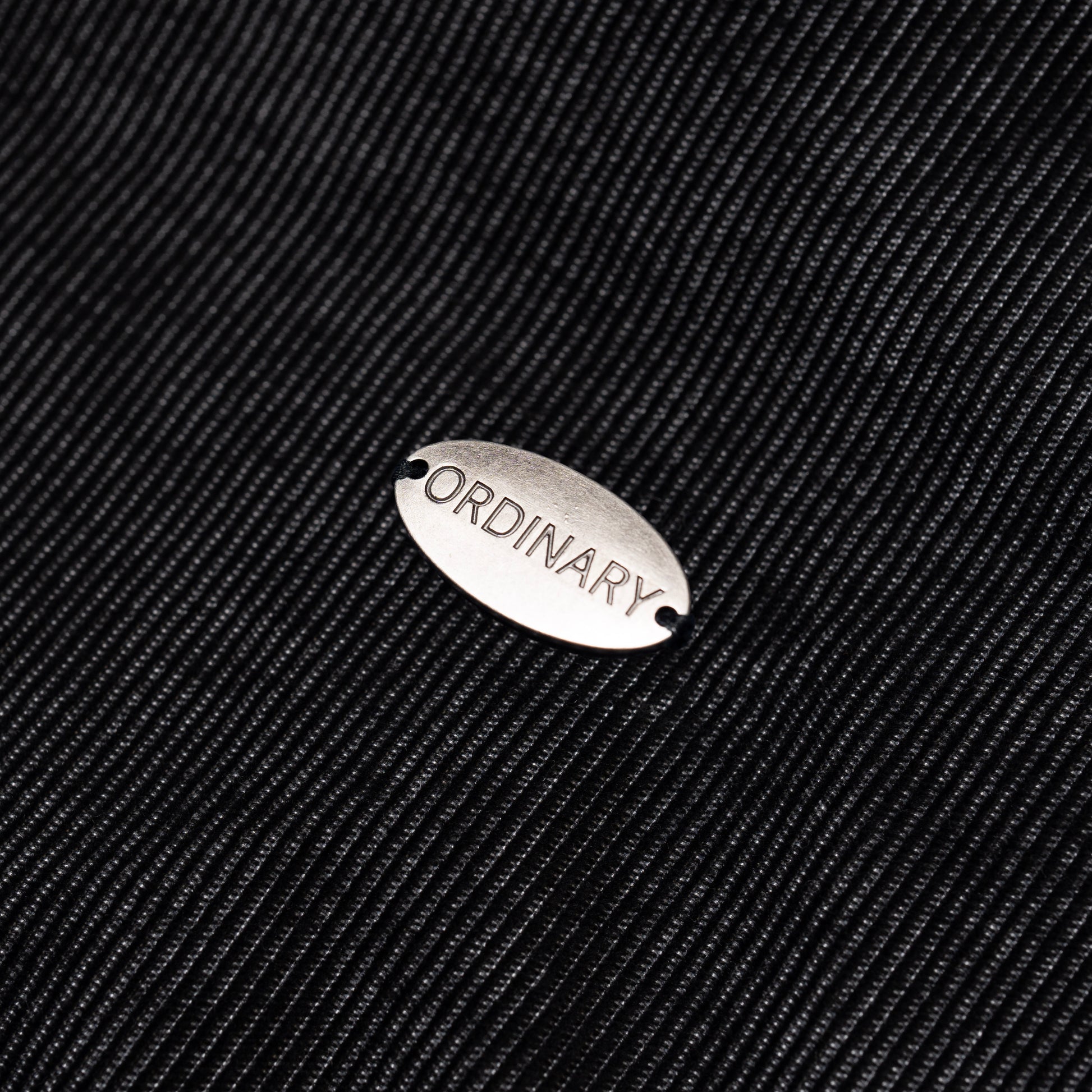 🔹 胸前設計洗舊感LOGO鐵牌五金製作,在沈穩布面上點綴俐落金屬光澤。