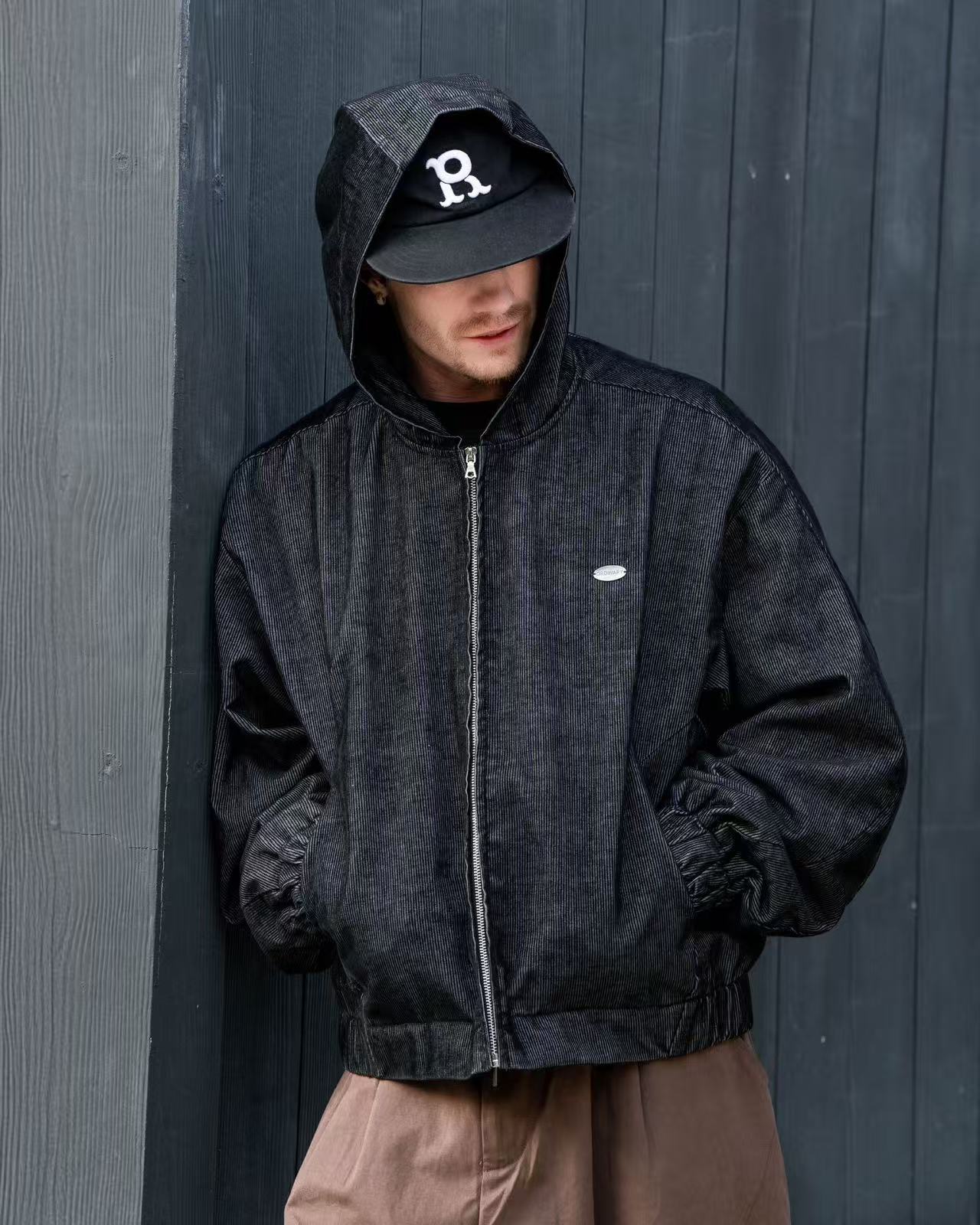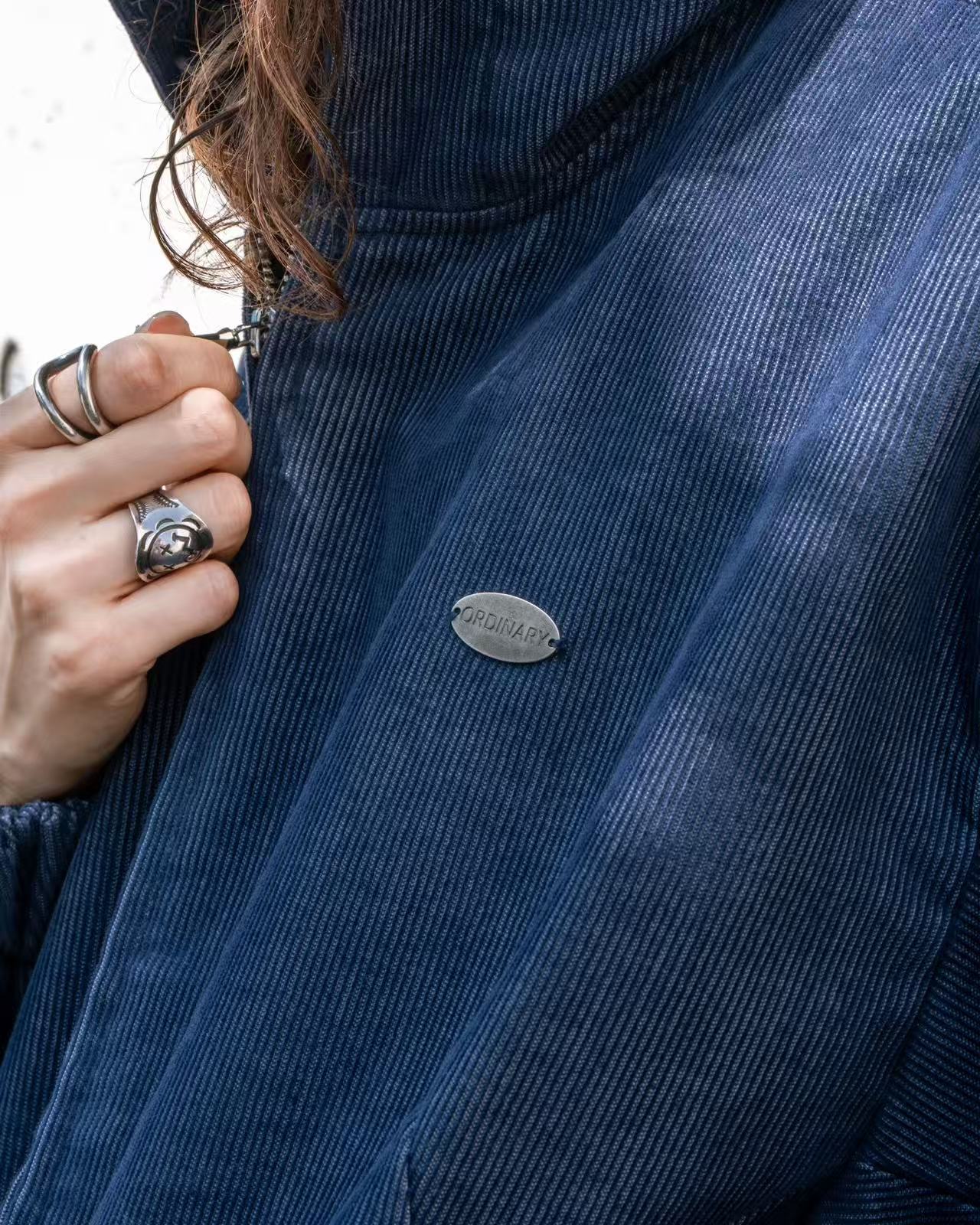🔹 採用300克細緻燈芯絨布料,經水洗加工呈現自然褪色質感與柔軟觸感,展現復古隨性氛圍。