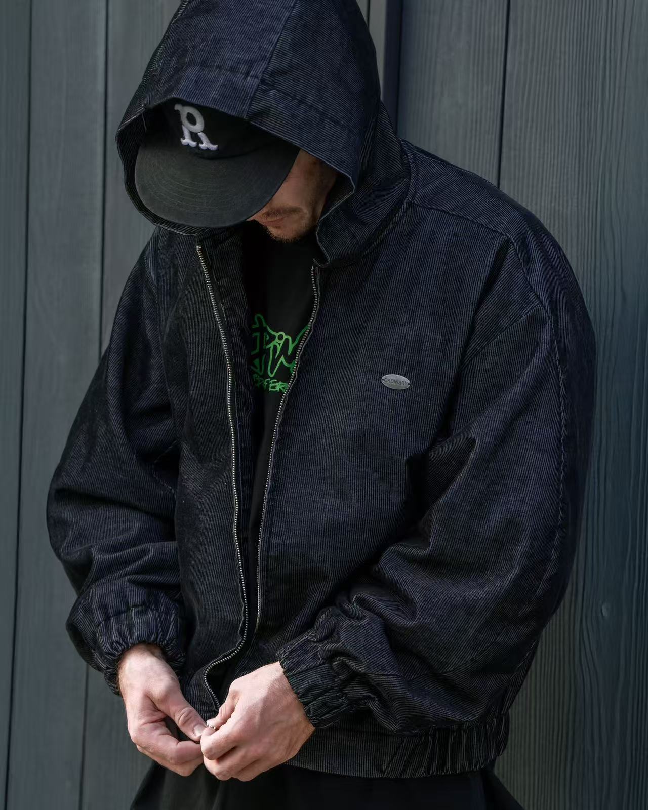 🔹 提供深藍與黑色兩款選擇,低調配色呼應秋冬氛圍,呈現復古街頭感。