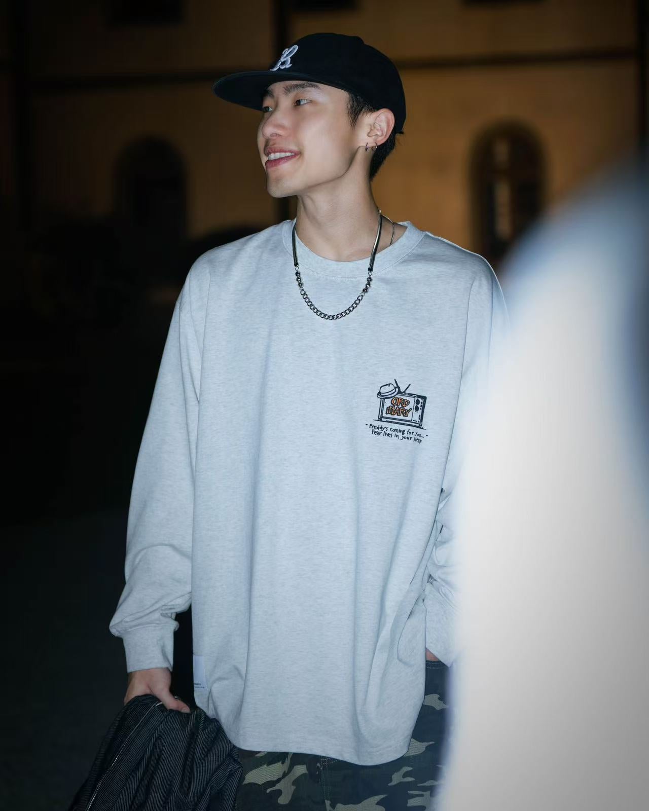 🔹 胸口以小尺寸圖樣延伸主題構成,低調呼應背面主視覺,展現設計的整體連貫性與層次感。